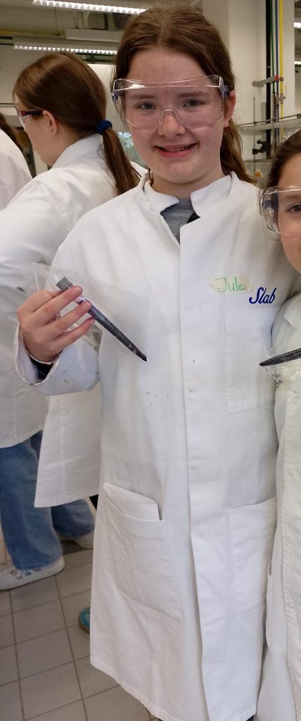 Am zweiten Tag ging es zur Ruhr- Universität Bochum. In einem großen Labor haben wir viele Versuche gemacht. Unter anderem haben wir das Wasser aus Tinte entzogen. Nach einer Pause in der Mensa, durften wir einen Magic Marker, ein Stift der die Farbe ändert, herstellen. Das war spannend. Am selben Abend waren wir im Planetarium. In der Kuppel, die eine Höhe von 13 Metern hat, schauten wir uns den Film: „Vom Urknall zum Menschen“ an. Danach durften wir der Leiterin des Planetariums viele Fragen stellen.