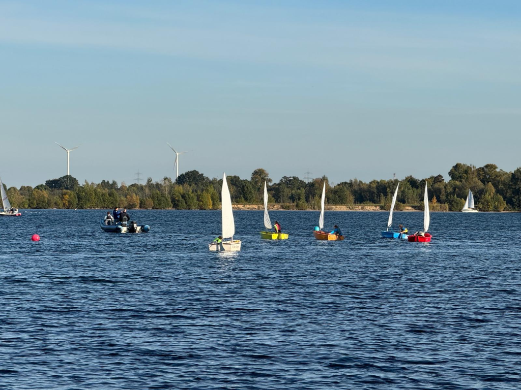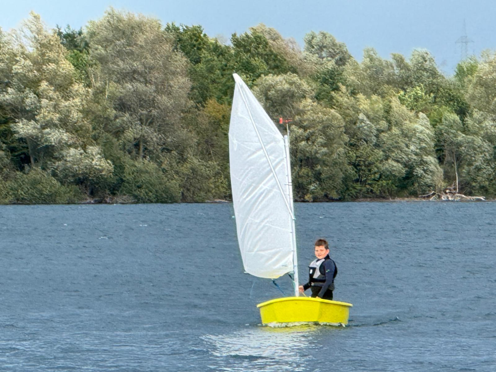 Nach den Sommerferien waren wir donnerstags nachmittags am Königshüttesee zum Segeln. Wir haben zusammen die Boote aufgebaut, noch weitere Theorie gelernt und gesegelt. Die dreieinhalb Stunden sind wie im Flug vergangen. Am Anfang war es schwer alles zu beachten. Schnell stand man mit dem Boot im Wind und kam nicht mehr voran. Aber das wurde schnell besser. Man merkte, dass es allen großen Spaß machte Segeln zu lernen. Zudem hat sich eine tolle Gemeinschaft entwickelt. Besonders aufregend waren die Kenter-Übungen. Dabei mussten wir auch lernen unter einem durchgekenterten Segelboot herauszutauchen.