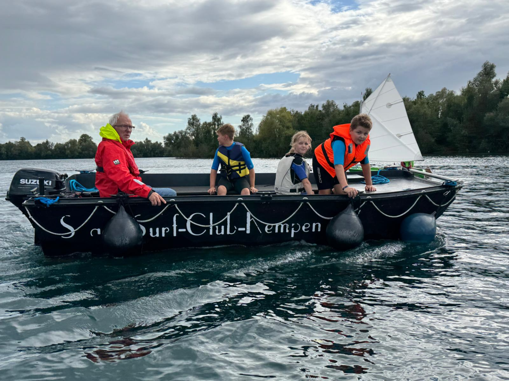 Am ersten Samstag in den Herbstferien war dann die Prüfung. Diese wurde von drei Prüfern vom SSCK (Segel-Surf-Club-Kempen e.V.) abgenommen. Wir mussten Anlege-, Ablege-, Wende- und Halsemanöver vorführen. Es war leider sehr wenig Wind, so dass wir nur langsam vorankamen. Am Ende hatten alle Teilnehmer bestanden. Zum Abschluss wurden die Jugendsegelscheine verteilt und wir haben uns bei Herrn Hemkemeyer, Herrn Peters und den anderen Helfern bedankt. Ein besonderer Dank ging dabei auch an Frau Schley, die sogar extra noch weitere Fortbildungen gemacht hatte, um bei der Segel-Ausbildung zu unterstützen.